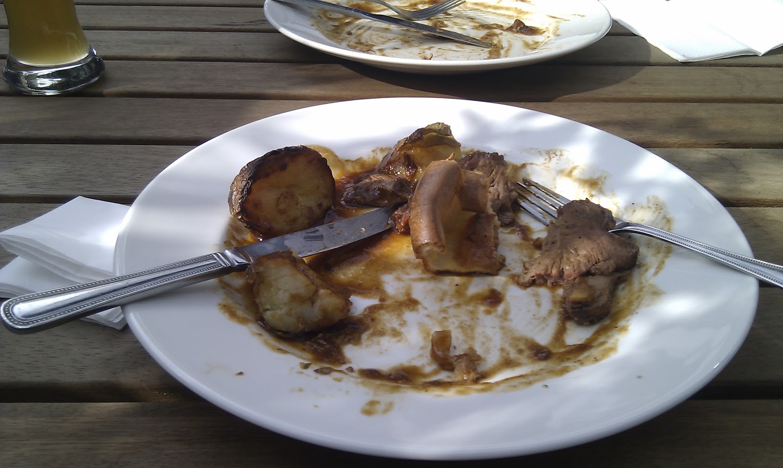 James ordered the lamb, it was presented well and a decent sized portion, I guess, for £10 or so (I am getting used to these prices). The lamb was slightly too fatty, definitely not the best bit of lamb I have tasted. The roast potatoes were crispy, yeah they were quite well done (in duck fat I believe). The vegetables were decently done (no peas thankfully!), and the yorkshire pudding seems to have been properly made and was a reasonable size.