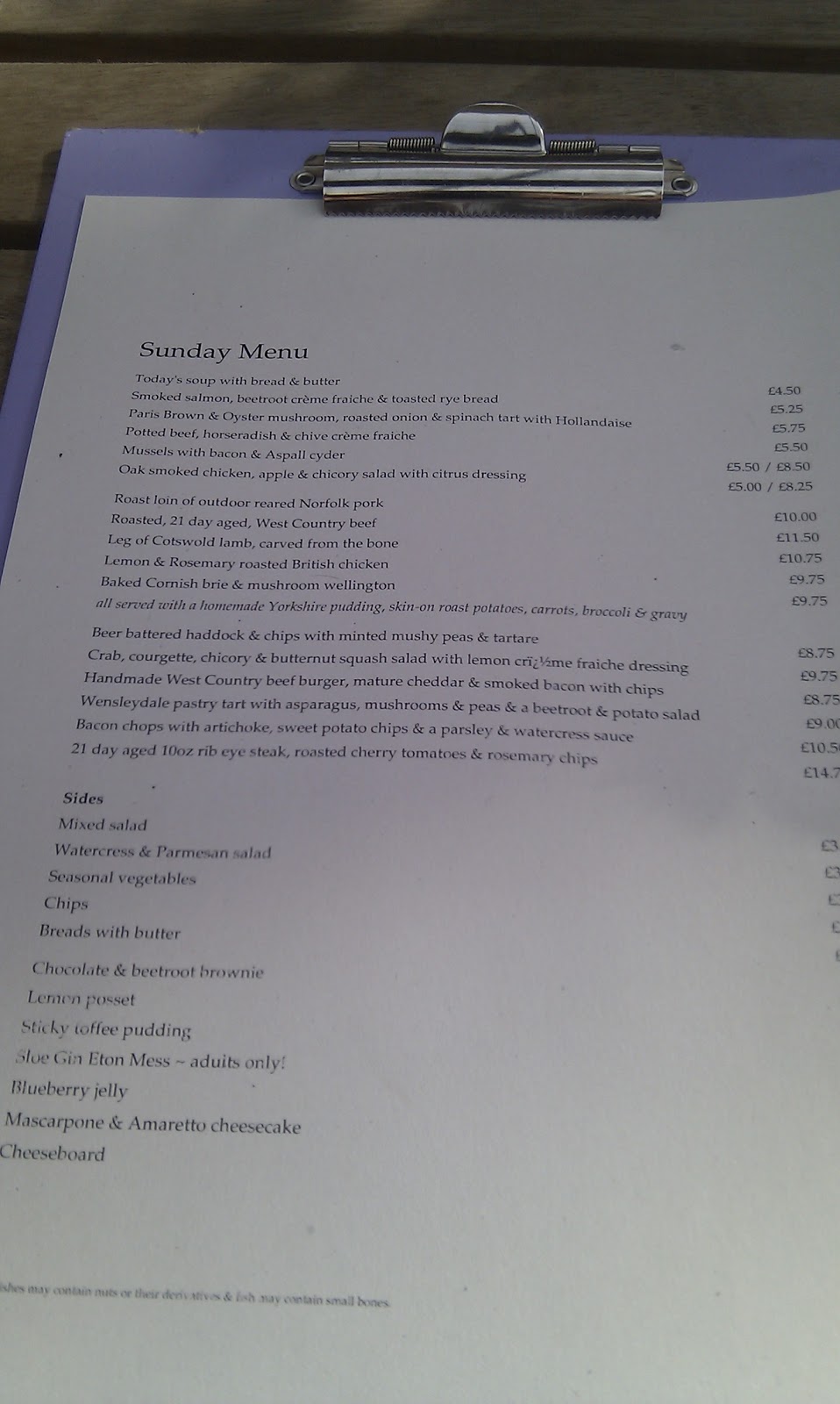 A little over priced for the quality of the meal. The beef I had was well over cooked and very gristly, not enough gravy, roast potatoes only slightly over cooked.